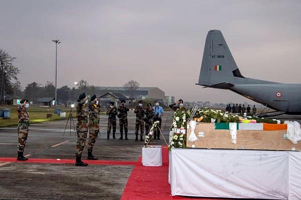 ਦੱਸਿਆ ਜਾ ਰਹੀਆਂ ਹੈ ਕਿ ਗਜਰਾਜ ਕੋਰ ਦੇ ਜਨਰਲ ਅਫ਼ਸਰ ਕਮਾਂਡਿੰਗ ਲੈਫਟੀਨੈਟ ਜਨਰਲ ਰਵਿਨ ਖੋਸਲਾ ਅਤੇ ਹੋਰ ਵੀ ਸ਼ਹੀਦ ਜਵਾਨਾਂ ਨੂੰ ਸੀਨਿਅਰ ਅਧਿਕਾਰੀਆਂ ਨੇ ਸ਼ਰਧਾਂਜਲੀ ਭੇਟ ਕੀਤੀ। ਉਨ੍ਹਾਂ ਨੇ ਦੱਸਿਆ ਕਿ ਸਮਾਗਮ ਤੋਂ ਬਾਅਦ ਉਨ੍ਹਾਂ ਦੀਆਂ ਮ੍ਰਿਤਕ ਦੇਹਾਂ ਜੰਮੂ ਕਸ਼ਮੀਰ, ਕਠੁਆ ਤੇ ਪੰਜਾਬ ਦੇ ਬਟਾਲਾ, ਹਿਮਾਚਲ, ਘਮਾਰਵੀ ਸਥਿਤ ਜੱਦੀ ਪਿੰਡ 'ਚ ਭੇਜ ਦਿੱਤੀਆਂ ਗਈਆਂ ਹਨ।