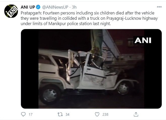 ਸਾਰੇ ਬਾਰਾਤੀ ਸ਼ੇਖਪੁਰ ਪਿੰਡ ਵਿੱਚ ਇੱਕ ਵਿਆਹ ਸਮਾਗਮ ਵਿੱਚ ਸ਼ਾਮਲ ਹੋ ਕੇ ਘਰ ਪਰਤ ਰਹੇ ਸਨ। ਇਸ ਹਾਦਸੇ ਦਾ ਸ਼ਿਕਾਰ ਹੋਏ 14 ਲੋਕਾਂ ਵਿਚੋਂ 7 ਬੱਚੇ ਵੀ ਸ਼ਾਮਲ ਸਨ। ਪੁਲਿਸ ਨੇ ਮੌਕੇ ਤੇ ਪਹੁੰਚ ਕੇ ਬੋਲੇਰੋ ਕਾਰ ਨੂੰ ਇੱਕ ਗੈਸ ਕਟਰ ਨਾਲ ਕੱਟ ਦਿੱਤਾ ਅਤੇ ਸਾਰੇ 14 ਲੋਕਾਂ ਦੀਆਂ ਲਾਸ਼ਾਂ ਨੂੰ ਬਾਹਰ ਕੱਢ ਲਿਆ ।ਇਸ ਘਟਨਾ 'ਤੇ ਦੁੱਖ ਜ਼ਾਹਰ ਕਰਦੇ ਹੋਏ ਸੀਐਮ ਯੋਗੀ ਨੇ ਪੀੜਤਾਂ ਨੂੰ ਹਰ ਸੰਭਵ ਸਹਾਇਤਾ ਲਈ ਨਿਰਦੇਸ਼ ਦਿੱਤੇ ਹਨ।