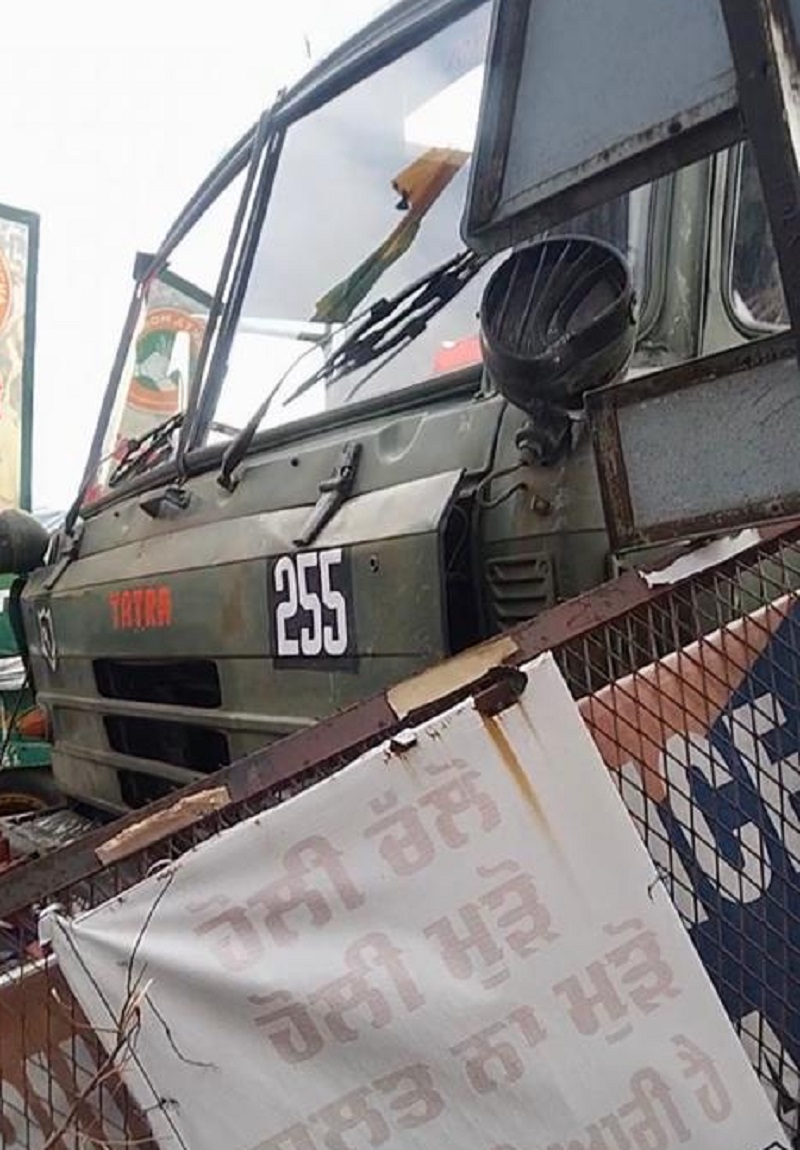 ਨਿਊਜ਼ ਡੈਸਕ (ਰਿੰਪੀ ਸ਼ਰਮਾ) : ਫਗਵਾੜਾ ਤੋਂ ਇਕ ਵੱਡੀ ਖ਼ਬਰ ਸਾਹਮਣੇ ਆ ਰਹੀ ਹੈ, ਜਿਥੇ ਕਿਸਾਨ ਧਰਨੇ ਦੌਰਾਨ ਵੱਡਾ ਹਾਦਸਾ ਹੋਣ ਤੋਂ ਟਲਿਆ ਹੈ। ਜਿਸ ਕਰਨ ਧਰਨੇ ਤੇ ਬੈਠੇ ਹੋਏ ਦਰਜਨਾਂ ਕਿਸਾਨ ਵੱਲ ਵੱਲ ਬਚੇ ਹਨ। ਦੱਸਿਆ ਜਾ ਰਿਹਾ ਹੈ ਕਿ ਭਾਰਤੀ ਫੋਜ ਦਾ ਇਕ ਵੱਡਾ ਟਰੱਕ ਕੌਮੀ ਰਾਜਮਾਰਗ ਤੋਂ ਲੰਘ ਰਿਹਾ ਸੀ । ਇਸ ਦੌਰਾਨ ਹੀ ਤਕਨੀਕੀ ਖਰਾਬੀ ਕਾਰਨ ਟਰੱਕ ਬੇਕਾਬੂ ਹੋ ਗਿਆ ਜੋ ਕਿ ਬੈਰੀਕੇਡ ਵਿੱਚ ਜਾ ਕੇ ਦੇਖਦੇ ਹੀ ਦੇਖਦੇ ਉਹ ਟਰਾਲੀ ਨਾਲ ਟੱਕਰਾਂ ਗਿਆ । ਕਿਸਾਨਾਂ ਨੇ ਦੱਸਿਆ ਕਿ ਉਨ੍ਹਾਂ ਵਲੋਂ ਧਰਨੇ ਵਾਲੀ ਥਾਂ ਤੇ ਜਿਹੜੀ ਟਰਾਲੀ ਕੌਮੀ ਰਾਜਮਾਰਗ ਨਾਲ ਲਗਾਈ ਹੋਈ ਸੀ। ਉਸ ਵਿੱਚ ਜਾ ਟੱਕਰਾਂ ਗਈ ਜਿਸ ਨਾਲ ਕੋਈ ਜਾਨੀ ਨੁਕਸਾਨ ਨਹੀਂ ਹੋਈ ਹੈ।