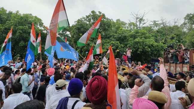 ਜਿਕਰਯੋਗ ਹੈ ਕਿ ਅੱਜ ਦਿੱਲੀ ਦੇ ਵਿਚ ਵੀ ਕਾਂਗਰਸ ਸਰਕਾਰ ਦੇ ਵੱਲੋਂ ਕੇਂਦਰ ਦੇ ਖਿਲਾਫ ਪ੍ਰਦਰਸ਼ਨ ਕੀਤਾ ਗਿਆ ਸੀ ਜਿਥੇ ਕਿ ਰਾਹੁਲ ਗਾਂਧੀ, ਪ੍ਰਿਯੰਕਾ ਗਾਂਧੀ, ਗੁਰਜੀਤ ਔਜਲਾ, ਮਨੀਸ਼ ਤਿਵਾੜੀ ਸਣੇ ਕਈ ਲੀਡਰਾਂ ਨੂੰ ਦਿੱਲੀ ਪੁਲਿਸ ਦੇ ਵੱਲੋਂ ਹਿਰਾਸਤ 'ਚ ਲਿਆ ਗਿਆ ਸੀ। ਹੁਣ ਚੰਡੀਗ੍ਹੜ ਦੇ ਵਿਚ ਵੀ ਕਾਂਗਰਸ ਪਾਰਟੀ ਦੇ ਵਰਕਰਾਂ ਵੱਲੋਂ ਪ੍ਰਧਾਨ ਰਾਜਾ ਵੜਿੰਗ ਦੀ ਅਗਵਾਈ ਹੇਠ ਪ੍ਰਦਰਸ਼ਨ ਕੀਤਾ ਜਾ ਰਿਹਾ ਸੀ ਜਿਥੇ ਕਿ ਉਨ੍ਹਾਂ ਨੂੰ ਵੀ ਅੱਗੇ ਤੱਕ ਕੂਚ ਨਹੀਂ ਕਰਨ ਦਿੱਤਾ ਗਿਆ ਅਤੇ ਚੰਡੀਗੜ੍ਹ ਪੁਲਿਸ ਨੇ ਵਰਕਰਾਂ ਨੂੰ ਹਿਰਾਸਤ 'ਚ ਲੈ ਲਿਆ।