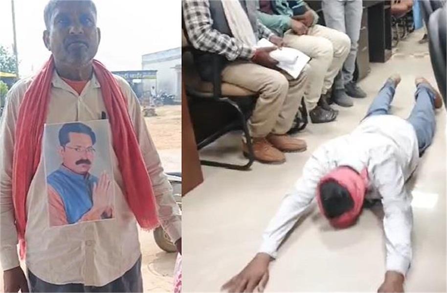 ਪੰਨਾ (ਪਾਇਲ) : ਦੱਸ ਦਇਏ ਕਿ ਪੰਨਾ ਜ਼ਿਲੇ 'ਚ ਜਨਤਕ ਸੁਣਵਾਈ ਦੌਰਾਨ ਮਾਹੌਲ ਉਸ ਸਮੇਂ ਗੰਭੀਰ ਹੋ ਗਿਆ ਜਦੋਂ ਪੋਵਈ ਵਿਧਾਨ ਸਭਾ ਹਲਕੇ ਦੇ ਪਿੰਡ ਨੰਦਨ ਦਾ ਨੌਜਵਾਨ ਉਮਾ ਪ੍ਰਸਾਦ ਲੋਧੀ ਆਪਣੀ ਛਾਤੀ 'ਤੇ ਵਿਧਾਇਕ ਪ੍ਰਹਿਲਾਦ ਲੋਧੀ ਦਾ ਪੋਸਟਰ ਲਗਾ ਕੇ ਅਧਿਕਾਰੀਆਂ ਦੇ ਸਾਹਮਣੇ ਪਹੁੰਚ ਗਿਆ। ਨੌਜਵਾਨ ਨੇ ਰੋਂਦੇ ਹੋਏ ਦੋਸ਼ ਲਾਇਆ ਕਿ ਭਾਜਪਾ ਦੇ ਪੋਵਈ ਦੇ ਵਿਧਾਇਕ ਪ੍ਰਹਿਲਾਦ ਲੋਧੀ ਉਸ ਦੀ ਜ਼ਮੀਨ 'ਤੇ ਜ਼ਬਰਦਸਤੀ ਕਬਜ਼ਾ ਕਰਨ ਦੀ ਕੋਸ਼ਿਸ਼ ਕਰ ਰਹੇ ਹਨ।