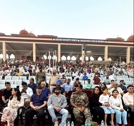 ਚੰਡੀਗੜ੍ਹ (ਨੇਹਾ): ਬਾਲੀਵੁੱਡ ਅਦਾਕਾਰ ਅਤੇ ਗੁਰਦਾਸਪੁਰ ਤੋਂ ਸਾਬਕਾ ਸੰਸਦ ਮੈਂਬਰ, ਸੰਨੀ ਦਿਓਲ, ਆਪਣੇ ਪਰਿਵਾਰ ਸਮੇਤ ਅੱਜ ਰਿਟਰੀਟ ਸਮਾਰੋਹ ਵਿੱਚ ਸ਼ਾਮਲ ਹੋਏ। ਸੰਨੀ ਦਿਓਲ ਖੁਦ ਗੱਡੀ ਚਲਾ ਕੇ ਅਟਾਰੀ ਸਰਹੱਦ ਪਹੁੰਚੇ। ਸੰਨੀ ਦਿਓਲ ਦੇ ਨਾਲ ਉਨ੍ਹਾਂ ਦਾ ਪੁੱਤਰ ਕਰਨ ਦਿਓਲ ਅਤੇ ਨੂੰਹ ਦਰਿਸ਼ਾ ਦਿਓਲ ਵੀ ਸਨ।