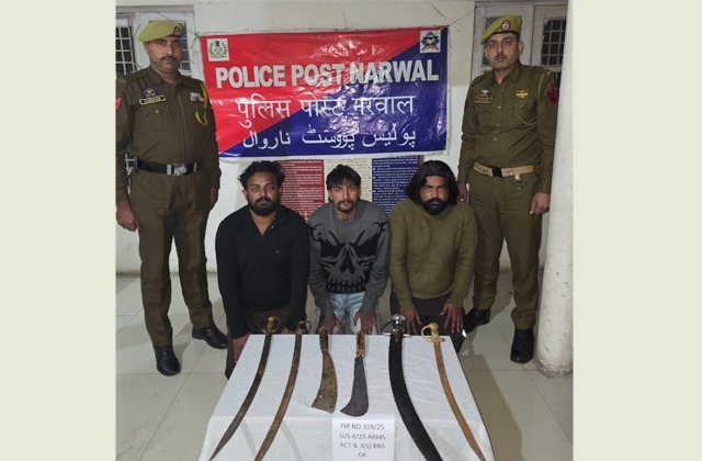 ਤਿੰਨ ਬਦਮਾਸ਼ ਹਥਿਆਰਾਂ ਸਮੇਤ ਕਾਬੂ, ਜੰਮੂ ਪੁਲਿਸ ਨੇ ਦਿਖਾਈ ਸਖ਼ਤ ਕਾਰਵਾਈ
