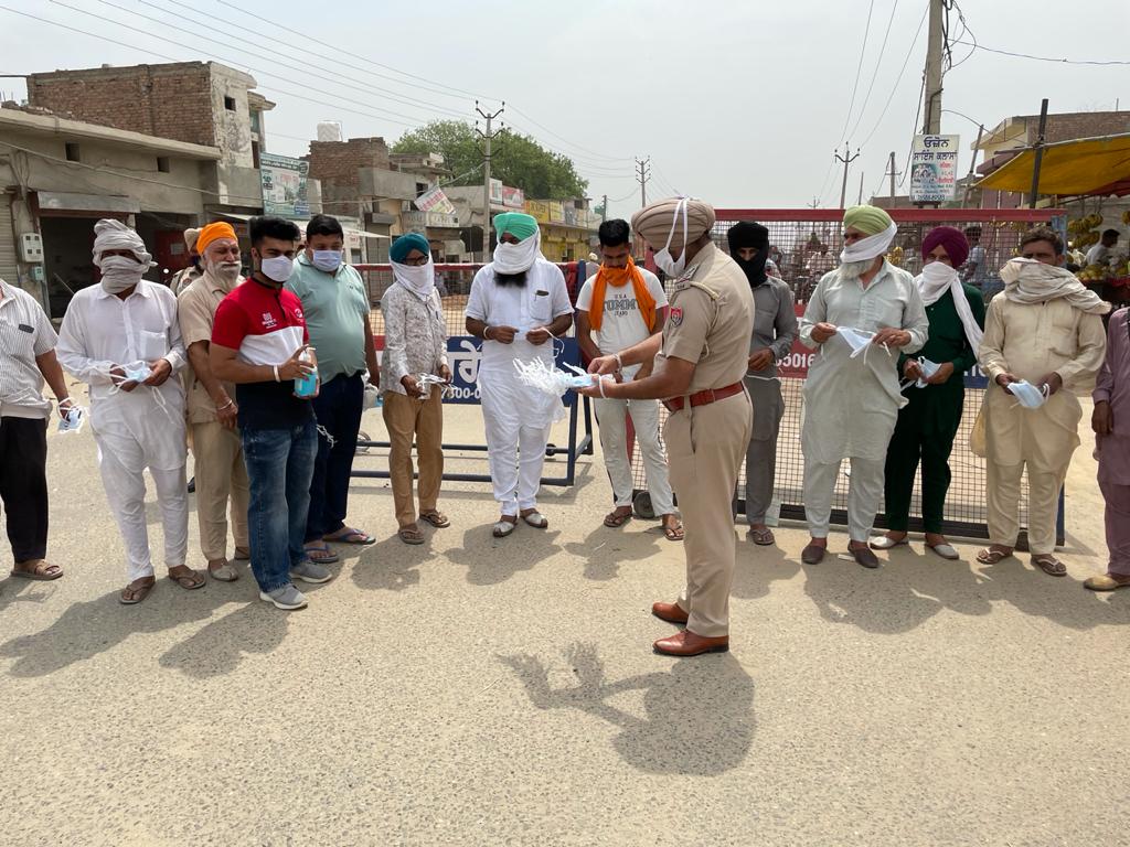 ਕਰੋਨਾ ਮਹਾਮਾਰੀ ਦੇ ਚੱਲਦਿਆ ਸਮਾਜ ਸੇਵੀ ਲੋਕਾਂ ਵੱਲੋਂ ਪੁਲਿਸ ਦੇ ਸਹਿਯੋਗ ਨਾਲ ਮਾਸਕ ਵੰਡੇ ਗਏ