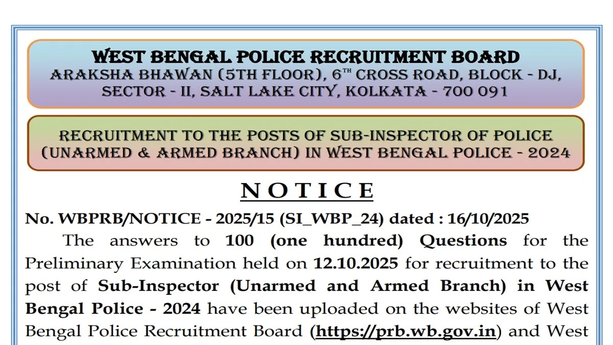 WB Police SI Answer Key 2025 ਜਾਰੀ, ਹੁਣੇ ਕਰੋ ਡਾਊਨਲੋਡ!