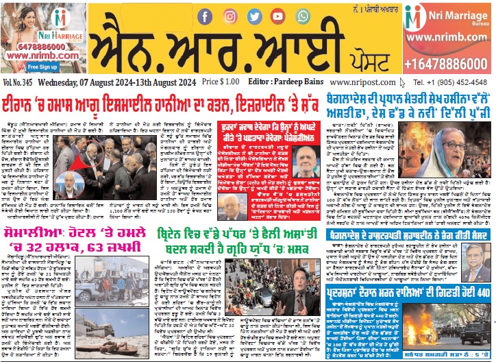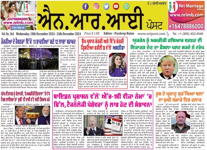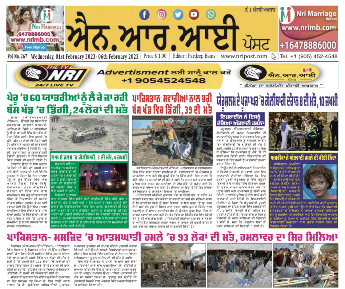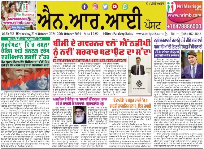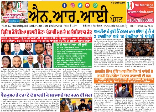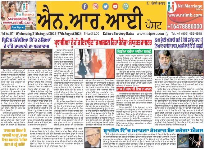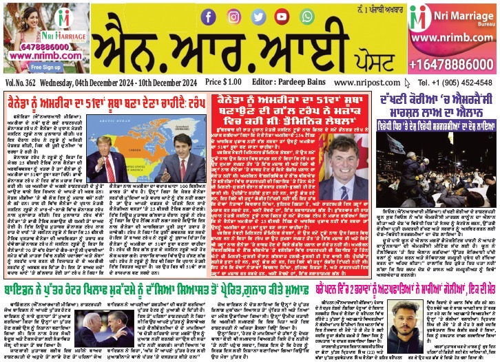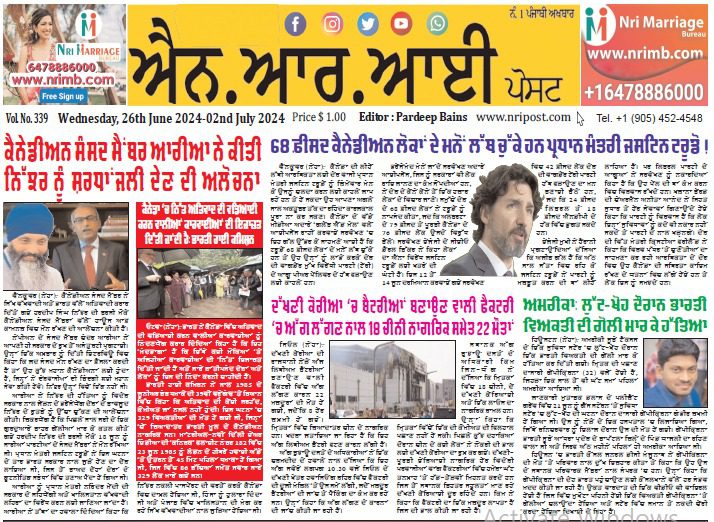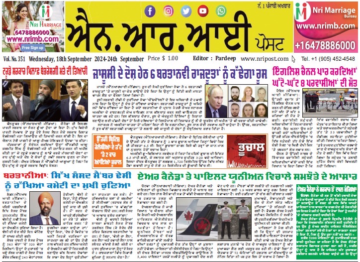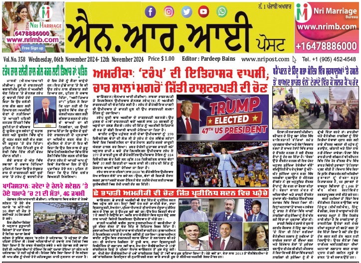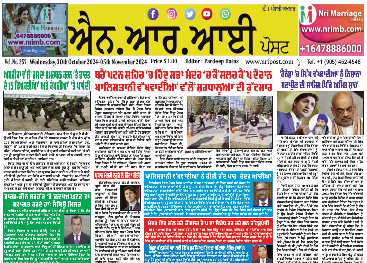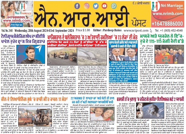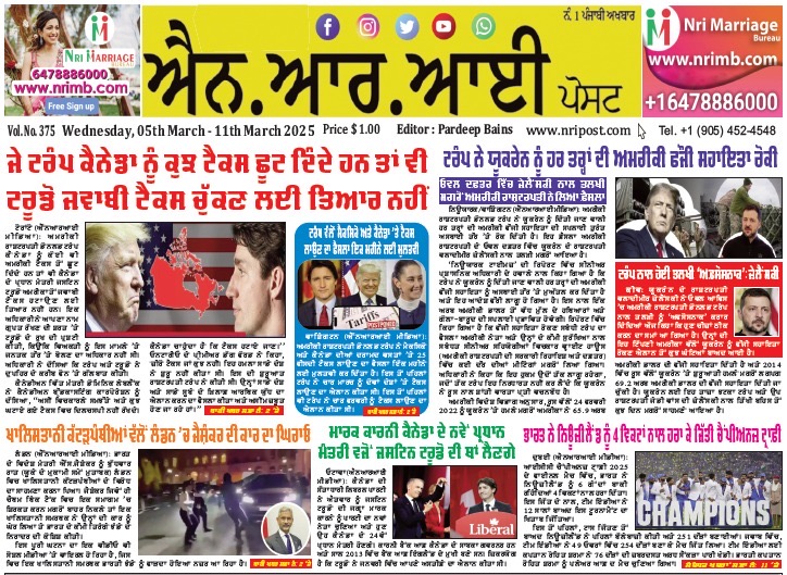 NRI Post Digital Edition of Latest International Punjabi News which is being circulated Chandigarh, Doaba, Majha, Malwa, and other cities of Punjab are available online also.