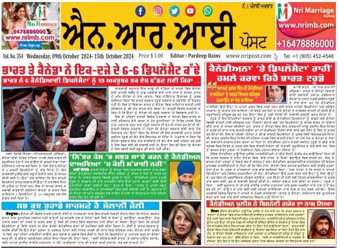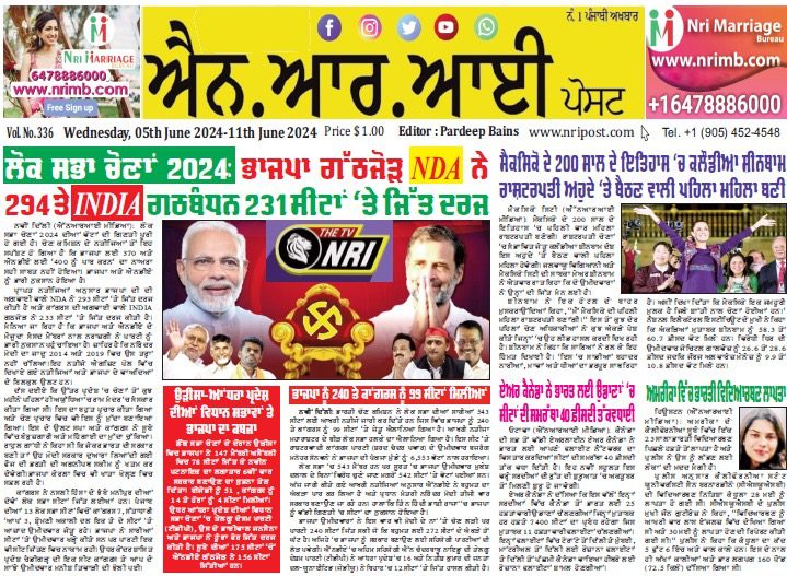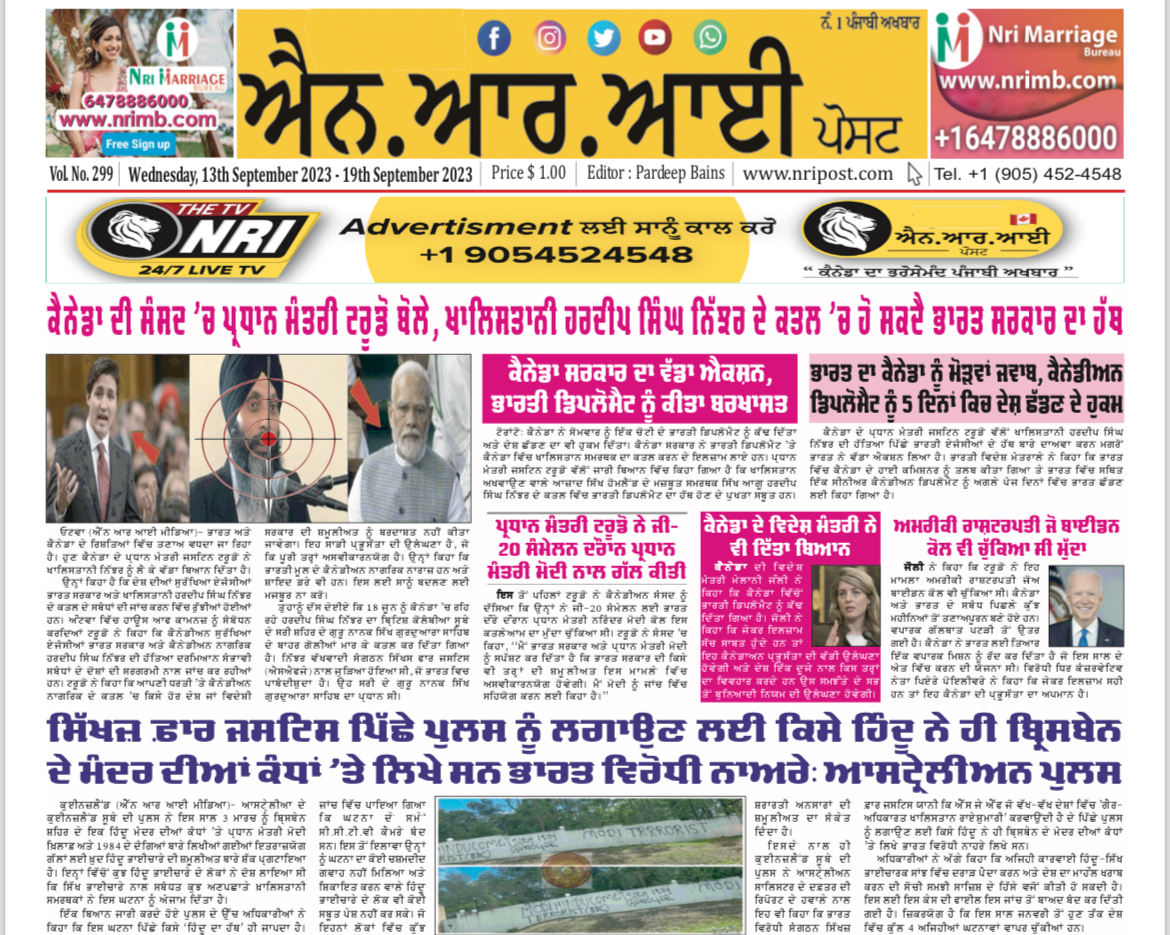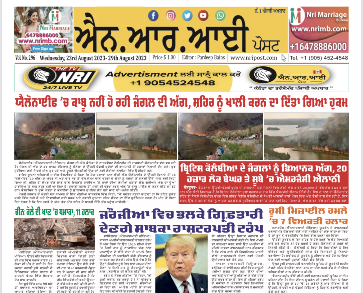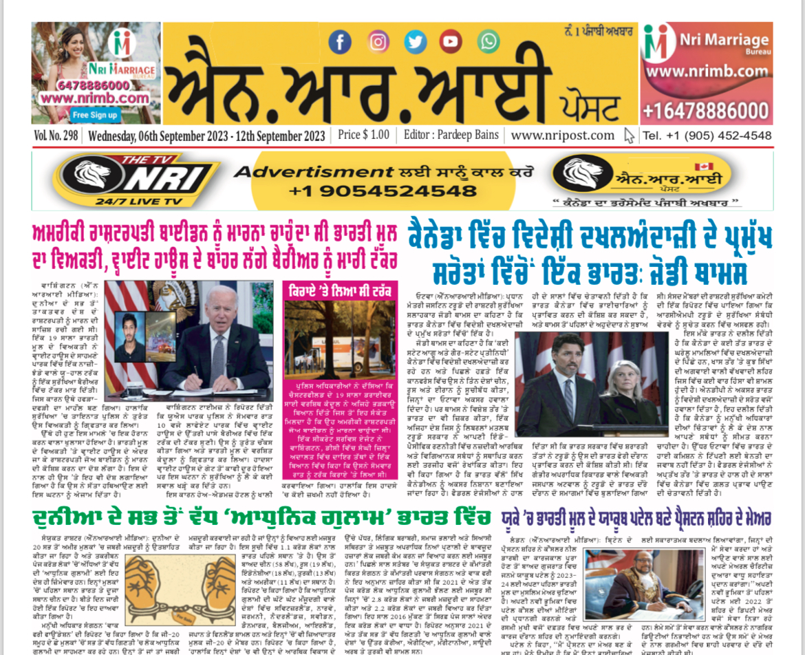 NRI Post Digital Edition of Latest Indian News which is being circulated Chandigarh, Doaba, Majha, Malwa, and other cities of Punjab are available online also.