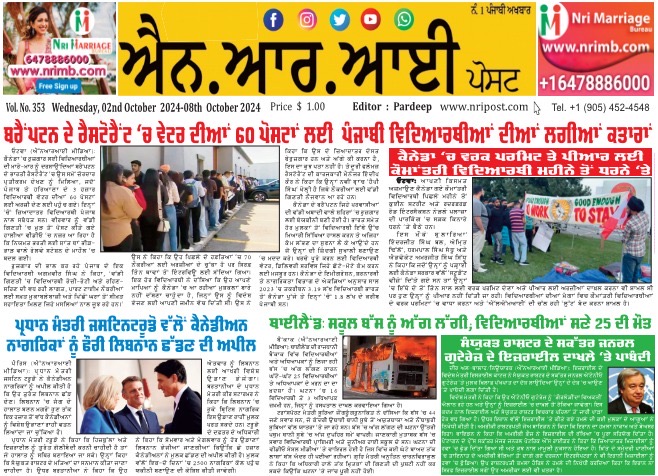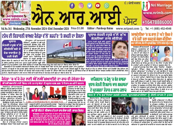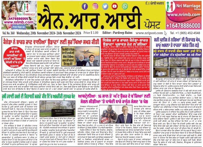 NRI Post Digital Edition of Latest Punjab News Headlines which is being circulated Chandigarh, Doaba, Majha, Malwa, and other cities of Punjab are available online also.