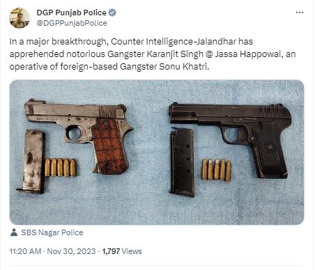 ਗ੍ਰਿਫਤਾਰੀ ਦੌਰਾਨ ਉਸ ਦੇ ਕਬਜ਼ੇ 'ਚੋਂ 2 ਪਿਸਤੌਲ ਅਤੇ 8 ਕਾਰਤੂਸ ਬਰਾਮਦ ਹੋਏ ਹਨ। ਡੀਜੀਪੀ ਨੇ ਦੱਸਿਆ ਕਿ ਗੈਂਗਸਟਰ ਜੱਸਾ ਜਲੰਧਰ ਦਿਹਾਤੀ ਦੇ ਪਿੰਡ ਭੋਜੋਵਾਲ ਵਿੱਚ ਮਾਂ-ਧੀ ਦੇ ਸਨਸਨੀਖੇਜ਼ ਦੋਹਰੇ ਕਤਲ ਅਤੇ ਹੋਰ ਘਿਨਾਉਣੇ ਅਪਰਾਧਾਂ ਸਮੇਤ ਕਤਲ ਦੇ ਛੇ ਮਾਮਲਿਆਂ ਵਿੱਚ ਲੋੜੀਂਦਾ ਸੀ। ਪੰਜਾਬ ਦੇ ਡੀਜੀਪੀ ਨੇ ਕਿਹਾ ਕਿ ਪੰਜਾਬ ਪੁਲਿਸ ਮੁੱਖ ਮੰਤਰੀ ਭਗਵੰਤ ਮਾਨ ਦੀਆਂ ਹਦਾਇਤਾਂ ਅਨੁਸਾਰ ਸੂਬੇ ਨੂੰ ਸੁਰੱਖਿਅਤ ਬਣਾਉਣ ਲਈ ਪੂਰੀ ਤਰ੍ਹਾਂ ਵਚਨਬੱਧ ਹੈ।