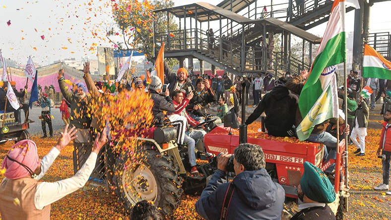 ਉਥੇ ਹੀ ਦੂਜੇ ਪਾਸੇ ਕਿਸਾਨ ਜਿੱਤ ਦੀ ਖੁਸ਼ੀ ਮਨਾ ਰਹੇ ਹਨ। ਸਰਹੱਦ 'ਤੇ ਨੌਜਵਾਨ ਟਰੈਕਟਰਾਂ 'ਤੇ ਗੀਤ "ਤੈਨੂੰ ਦਿੱਲੀਏ ਨੀ ਜਿੱਤ ਕੇ ਪੰਜਾਬ ਚੱਲੇ ਆ" ਗੂੰਜਦੇ ਰਹੇ।