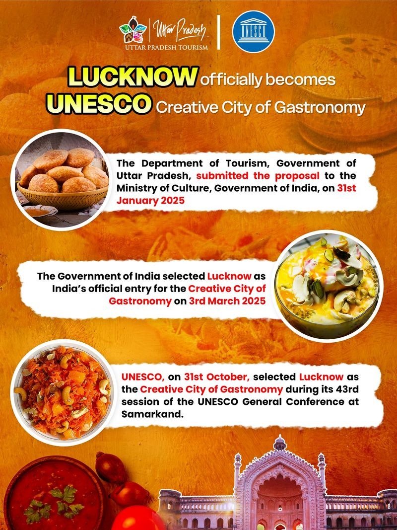 ਇਸ ਵਿੱਚ ਕਿਹਾ ਗਿਆ, “ਵਿਸ਼ਵ ਸ਼ਹਿਰ ਦਿਵਸ 2025 (30 ਅਕਤੂਬਰ) ’ਤੇ ਲਖਨਊ ਨੂੰ ਗੈਸਟਰੋਨੋਮੀ ਲਈ ਇੱਕ UNESCO ਰਚਨਾਤਮਕ ਸ਼ਹਿਰ ਵਜੋਂ ਨਾਮਜ਼ਦ ਕੀਤਾ ਗਿਆ ਹੈ, ਜੋ UNESCO ਰਚਨਾਤਮਕ ਸ਼ਹਿਰਾਂ ਦੇ ਨੈੱਟਵਰਕ (UCCN) ਵਿੱਚ ਸ਼ਾਮਲ ਕੀਤੇ ਗਏ 58 ਨਵੇਂ ਸ਼ਹਿਰਾਂ ਵਿੱਚੋਂ ਇੱਕ ਹੈ। UCCN, ਜਿਸ ਵਿੱਚ ਹੁਣ 100 ਤੋਂ ਵੱਧ ਦੇਸ਼ਾਂ ਦੇ 408 ਸ਼ਹਿਰ ਹਨ, ਸਥਾਈ ਸ਼ਹਿਰੀ ਵਿਕਾਸ ਦੇ ਮੁੱਖ ਚਾਲਕਾਂ ਵਜੋਂ ਰਚਨਾਤਮਕਤਾ ਅਤੇ ਸੱਭਿਆਚਾਰ ਨੂੰ ਉਤਸ਼ਾਹਿਤ ਕਰਦਾ ਹੈ।”