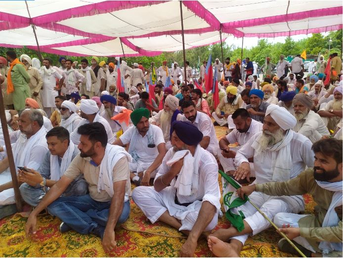 ਕਿਸਾਨਾਂ ਦੇ ਭਾਰੀ ਇਕੱਠ ਨੇ ਮਿੰਨੀ ਸਕੱਤਰੇਤ ਦੇ ਬਾਹਰ ਧਰਨਾ ਲਾ ਲਿਆ ਹੈ। ਪਹਿਲੀ ਲਾਈਨ ’ਚ ਕਿਸਾਨ ਆਗੂ ਬੈਠੇ ਹਨ ਤੇ ਉਨ੍ਹਾਂ ਦੇ ਪਿੱਛੇ ਕਿਸਾਨਾਂ ਦਾ ਭਾਰੀ ਇਕੱਠ ਹੈ। ਇਸ ਦੌਰਾਨ ਹਾਲਾਤ ਤਣਾਅਪੂਰਨ ਬਣੇ ਹੋਏ ਹਨ।