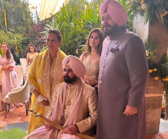 ਪੱਤਰ ਪ੍ਰੇਰਕ : ਪੰਜਾਬ ਕਾਂਗਰਸ ਦੇ ਸੀਨੀਅਰ ਆਗੂ ਨਵਜੋਤ ਸਿੰਘ ਸਿੱਧੂ ਦੇ ਪੁੱਤਰ ਕਰਨ ਸਿੱਧੂ ਅਤੇ ਇਨਾਇਤ ਕੌਰ ਰੰਧਾਵਾ ਅੱਜ ਵਿਆਹ ਦੇ ਬੰਧਨ ਵਿੱਚ ਬੱਝ ਗਏ। ਦੋਵਾਂ ਦੇ ਵਿਆਹ ਦੀਆਂ ਤਸਵੀਰਾਂ ਸਾਹਮਣੇ ਆਈਆਂ ਹਨ। ਲਾੜੇ ਕਰਨ ਸਿੱਧੂ ਨਾਲ ਮਾਂ ਨਵਜੋਤ ਕੌਰ, ਪਿਤਾ ਨਵਜੋਤ ਸਿੱਧੂ ਅਤੇ ਭੈਣ ਰਾਬੀਆ ਬੇਹੱਦ ਖੂਬਸੂਰਤ ਲੱਗ ਰਹੀਆਂ ਹਨ।