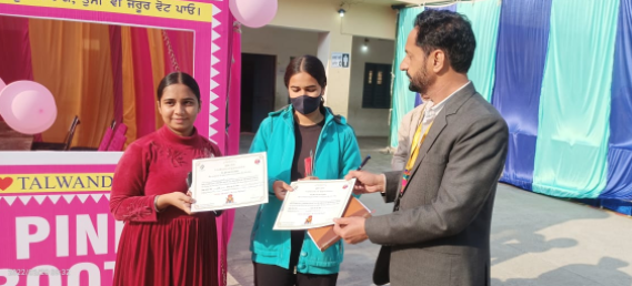 ਪਹਿਲੀ ਵਾਰ ਵੋਟ ਪਾਉਣ ਵਾਲੇ ਵੋਟਰਾਂ ਨੂੰ ਚੋਣ ਅਧਿਕਾਰੀਆਂ ਵੱਲੋਂ ਸਰਟੀਫਿਕੇਟ ਦਿੱਤੇ ਜਾ ਰਹੇ ਹਨ।