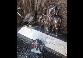 ਜਲੰਧਰ (ਰਾਘਵ): ਜਲੰਧਰ ਮਹਾਨਗਰ ਵਿੱਚ ਅੱਜ ਇੱਕ ਹੋਰ ਵੱਡੀ ਘਟਨਾ ਵਾਪਰੀ ਹੈ। ਜਲੰਧਰ ਦੇ ਸੋਢਲ ਰੋਡ 'ਤੇ ਥਾਪੜਾ ਗਾਰਡਨ ਵਿੱਚ ਸਥਿਤ ਸ਼ਨੀਦੇਵ ਮਹਾਰਾਜ ਦੀ ਮੂਰਤੀ ਨੂੰ ਇੱਕ ਸ਼ਰਾਰਤੀ ਨੌਜਵਾਨ ਨੇ ਤੋੜ ਦਿੱਤਾ। ਨੌਜਵਾਨਾਂ ਨੇ ਮੰਦਰ ਦੇ ਪੁਜਾਰੀ 'ਤੇ ਵੀ ਕਾਤਲਾਨਾ ਹਮਲਾ ਕੀਤਾ। ਮੰਦਰ ਵਿੱਚ ਮੌਜੂਦ ਲੋਕਾਂ ਨੇ ਨੌਜਵਾਨ ਨੂੰ ਫੜ ਲਿਆ, ਉਸਦੀ ਬੁਰੀ ਤਰ੍ਹਾਂ ਕੁੱਟਮਾਰ ਕੀਤੀ ਅਤੇ ਉਸਨੂੰ ਪੁਲਿਸ ਦੇ ਹਵਾਲੇ ਕਰ ਦਿੱਤਾ। ਪੁਲਿਸ ਨੇ ਦੋਸ਼ੀ ਦੀ ਪਛਾਣ ਬਹਾਦਰ (34) ਵਜੋਂ ਕੀਤੀ ਹੈ, ਜੋ ਕਿ ਜਲੰਧਰ ਦਾ ਰਹਿਣ ਵਾਲਾ ਹੈ। ਪੁਲਿਸ ਨੇ ਦੋਸ਼ੀ ਵਿਰੁੱਧ ਐਫਆਈਆਰ ਦਰਜ ਕਰ ਲਈ ਹੈ ਅਤੇ ਉਸਨੂੰ ਗ੍ਰਿਫ਼ਤਾਰ ਕਰ ਲਿਆ ਗਿਆ ਹੈ।