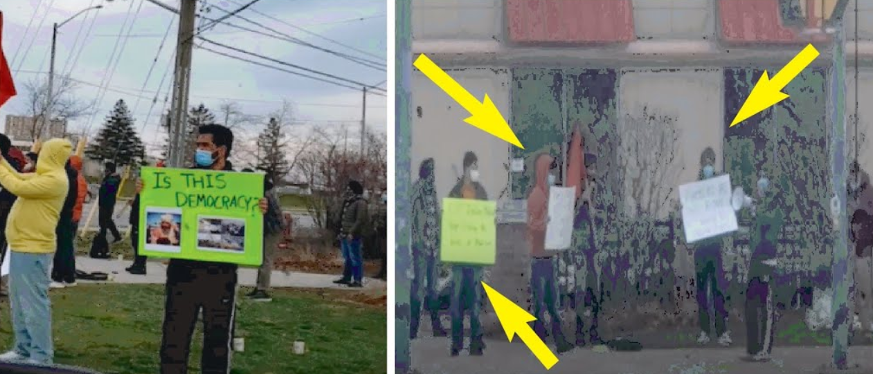 ਨੌਜਵਾਨਾਂ ਨੇ ਹੱਥ ਵਿੱਚ ਤਖਤੀਆਂ ਫੜੀਆਂ ਹੋਈਆਂ ਸਨ ਜਿਸ ਉੱਤੇ ਉਨਾਂ ਕਿਸਾਨਾਂ ਦੇ ਹੱਕ ਵਿੱਚ ਨਾਅਰੇ ਲਿਖੇ ਹੋਏ ਸਨ। ਜ਼ਿਕਰਯੋਗ ਹੈ ਕਿ ਕੈਨੇਡਾ ਵੱਸਦੇ ਸਮੂਹ ਪ੍ਰਵਾਸੀਆਂ ਵੱਲੋਂ ਇਸ ਕਿਸਾਨ ਅੰਦੋਲਨ ਨੂੰ ਲੈਕੇ ਫ਼ਿਕਰਮੰਦੀ ਵਿਖਾਈ ਜਾ ਰਹੀ ਹੈ ਤੇ ਕਿਸਾਨਾਂ ਦਾ ਹਰ ਪੱਖੋਂ ਸਾਥ ਦੇਣ ਦੀ ਕੋਸ਼ਿਸ਼ ਕੀਤੀ ਜਾ ਰਹੀ ਹੈ ।