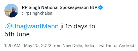 ਨਿਊਜ਼ ਡੈਸਕ : ਭਾਜਪਾ ਦੇ ਬੁਲਾਰੇ ਆਰ. ਪੀ. ਸਿੰਘ ਨੇ ਜੂਨ ਮਹੀਨੇ ਆ ਰਹੇ ਘੱਲੂਘਾਰੇ ਦਿਵਸ ਦੇ ਸਬੰਧ 'ਚ ਸੂਬਾ ਸਰਕਾਰ ਨੂੰ ਸੁਚੇਤ ਕੀਤਾ ਹੈ। ਉਨ੍ਹਾਂ ਟਵੀਟ ਕਰਦਿਆਂ ਲਿਖਿਆ, ''ਭਗਵੰਤ ਮਾਨ ਜੀ 5 ਜੂਨ ਆਉਣ 'ਚ 15 ਦਿਨ ਬਚੇ ਹਨ।" ਇਸ ਬਾਰੇ ਜਦ ਉਨ੍ਹਾਂ ਕੋਲੋਂ ਤਫਸੀਲ 'ਚ ਪੁੱਛਿਆ ਗਿਆ ਤਾਂ ਉਨ੍ਹਾਂ ਦੱਸਿਆ ਕਿ ਪਿਛਲੇ ਦੋ ਮਹੀਨਿਆਂ ਤੋਂ ਪੰਜਾਬ ਦੀ ਸਥਿਤੀ ਬੇਹੱਦ ਖਰਾਬ ਚੱਲ ਰਹੀ ਹੈ, ਕੁਝ ਖਾਲਿਸਤਾਨੀ ਤਾਕਤਾਂ ਜਾਣਬੁੱਝ ਕੇ ਹਾਲਾਤ ਖਰਾਬ ਕਰ ਰਹੀਆਂ ਨੇ। ਲਗਾਤਾਰ ਅਣਸੁਖਾਵੀਆਂ ਘਟਨਾਵਾਂ ਵਾਪਰ ਰਹੀਆਂ ਨੇ ਪਰ ਮੁੱਖ ਮੰਤਰੀ ਕੋਲ ਇਸ ਦਾ ਕੋਈ ਜਵਾਬ ਨਹੀਂ ਹੈ। ਸਰਕਾਰ ਦੀ ਜ਼ਿੰਮੇਵਾਰੀ ਹੁੰਦੀ ਹੈ ਕਿ ਘਟਨਾ ਨੂੰ ਵਾਪਰਨ ਨਾ ਦਿੱਤਾ ਜਾਵੇ ਪਰ ਪੰਜਾਬ ਸਰਕਾਰ ਘਟਨਾ ਬੀਤਣ ਤੋਂ ਬਾਅਦ ਕੰਟਰੋਲ ਕਰਨ ਲਈ ਅੱਖਾਂ ਖੋਲ੍ਹਦੀ ਹੈ।