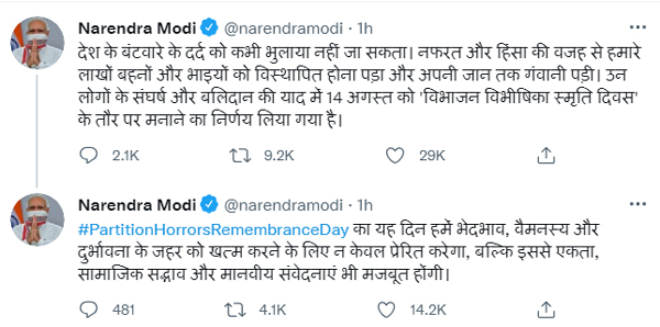14 ਅਗਸਤ ਨੂੰ ਵੰਡ ਦਾ ਦੁਖਾਂਤਕ ਦਿਹਾੜਾ ਦਿਵਸ ਵਜੋਂ ਮਨਾਇਆ ਜਾਵੇਗਾ : ‘PM’ ਮੋਦੀ