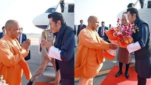 ਲਖਨਊ (ਨੇਹਾ): ਭੂਟਾਨ ਦੇ ਰਾਜਾ ਜਿਗਮੇ ਖੇਸਰ ਨਾਮਗਾਇਲ ਵਾਂਗਚੱਕ ਸੋਮਵਾਰ ਨੂੰ ਲਖਨਊ ਪਹੁੰਚੇ। ਚੌਧਰੀ ਚਰਨ ਸਿੰਘ ਅੰਤਰਰਾਸ਼ਟਰੀ ਹਵਾਈ ਅੱਡੇ 'ਤੇ ਮੁੱਖ ਮੰਤਰੀ ਯੋਗੀ ਆਦਿੱਤਿਆਨਾਥ ਨੇ ਉਨ੍ਹਾਂ ਦਾ ਗੁਲਦਸਤੇ ਨਾਲ ਸਵਾਗਤ ਕੀਤਾ। ਉਹ ਅੱਜ (ਮੰਗਲਵਾਰ) ਪ੍ਰਯਾਗਰਾਜ ਮਹਾਕੁੰਭ ਵਿੱਚ ਜਾਣਗੇ ਅਤੇ ਸੰਗਮ ਵਿੱਚ ਪਵਿੱਤਰ ਤ੍ਰਿਵੇਣੀ ਵਿੱਚ ਇਸ਼ਨਾਨ ਕਰਨਗੇ ਅਤੇ ਪੂਜਾ ਕਰਨਗੇ। ਮੁੱਖ ਮੰਤਰੀ ਯੋਗੀ ਆਦਿੱਤਿਆਨਾਥ ਅਤੇ ਵਿੱਤ ਮੰਤਰੀ ਸੁਰੇਸ਼ ਖੰਨਾ ਨੇ ਲਖਨਊ ਦੇ ਤਾਜ ਹੋਟਲ ਵਿੱਚ ਭੂਟਾਨ ਦੇ ਰਾਜਾ ਨਾਲ ਸ਼ਿਸ਼ਟਾਚਾਰ ਮੁਲਾਕਾਤ ਕੀਤੀ। ਰਾਜਪਾਲ ਆਨੰਦੀਬੇਨ ਪਟੇਲ ਦੀ ਤਰਫੋਂ ਰਾਜ ਭਵਨ ਵਿੱਚ ਭੂਟਾਨ ਦੇ ਰਾਜੇ ਦੇ ਸਨਮਾਨ ਵਿੱਚ ਰਾਤ ਦੇ ਖਾਣੇ ਦਾ ਆਯੋਜਨ ਕੀਤਾ ਗਿਆ। ਇਸ ਮੌਕੇ ਰਾਜ ਭਵਨ ਪਹੁੰਚਣ 'ਤੇ ਰਾਜਪਾਲ ਅਤੇ ਮੁੱਖ ਮੰਤਰੀ ਨੇ ਉਨ੍ਹਾਂ ਦਾ ਸਵਾਗਤ ਕੀਤਾ।