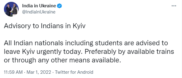 ਸੂਤਰਾਂ ਦਾ ਕਹਿਣਾ ਹੈ ਕਿ ਭਾਰਤੀ ਹਵਾਈ ਸੈਨਾ ਮੰਗਲਵਾਰ ਤੋਂ ਭਾਰਤੀਆਂ ਨੂੰ ਕੱਢਣ ਲਈ ਕਈ ਸੀ-17 ਜਹਾਜ਼ਾਂ ਨੂੰ ਤਾਇਨਾਤ ਕਰਨ ਦੀ ਸੰਭਾਵਨਾ ਹੈ। ਪ੍ਰਧਾਨ ਮੰਤਰੀ ਮੋਦੀ ਨੇ ਭਾਰਤੀ ਹਵਾਈ ਸੈਨਾ ਨੂੰ ਨਿਕਾਸੀ ਦੇ ਯਤਨਾਂ 'ਚ ਸ਼ਾਮਲ ਹੋਣ ਲਈ ਕਿਹਾ।