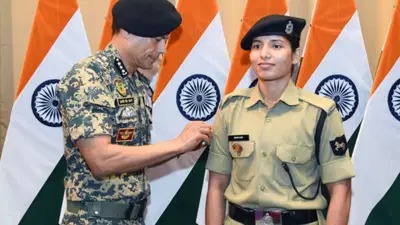 ਨਵੀਂ ਦਿੱਲੀ (ਨੇਹਾ): ਉੱਤਰ ਪ੍ਰਦੇਸ਼ ਦੇ ਦਾਦਰੀ ਦੀ ਰਹਿਣ ਵਾਲੀ ਸ਼ਿਵਾਨੀ ਨੇ ਇਤਿਹਾਸ ਰਚ ਦਿੱਤਾ ਹੈ। ਉਸਨੂੰ ਬੀਐਸਐਫ ਵਿੱਚ ਭਰਤੀ ਹੋਣ ਤੋਂ ਸਿਰਫ਼ ਪੰਜ ਮਹੀਨੇ ਬਾਅਦ ਹੀ ਤਰੱਕੀ ਮਿਲੀ। ਉਸਦੇ ਪਿਤਾ ਇੱਕ ਤਰਖਾਣ ਦਾ ਕੰਮ ਕਰਦੇ ਹਨ। ਸੀਮਾ ਸੁਰੱਖਿਆ ਬਲ (BSF) ਦੇ ਛੇ ਦਹਾਕਿਆਂ ਦੇ ਇਤਿਹਾਸ ਵਿੱਚ ਇਹ ਪਹਿਲੀ ਵਾਰ ਹੈ ਜਦੋਂ ਕਿਸੇ ਨੂੰ ਭਰਤੀ ਹੋਣ ਦੇ ਸਿਰਫ਼ ਪੰਜ ਮਹੀਨਿਆਂ ਦੇ ਅੰਦਰ ਇਹ ਤਰੱਕੀ ਮਿਲੀ ਹੈ। ਸ਼ਿਵਾਨੀ ਦੀ ਹੁਣ ਦੇਸ਼ ਭਰ ਵਿੱਚ ਚਰਚਾ ਹੋ ਰਹੀ ਹੈ। ਆਓ ਉਸ ਬਾਰੇ ਹੋਰ ਜਾਣੀਏ।