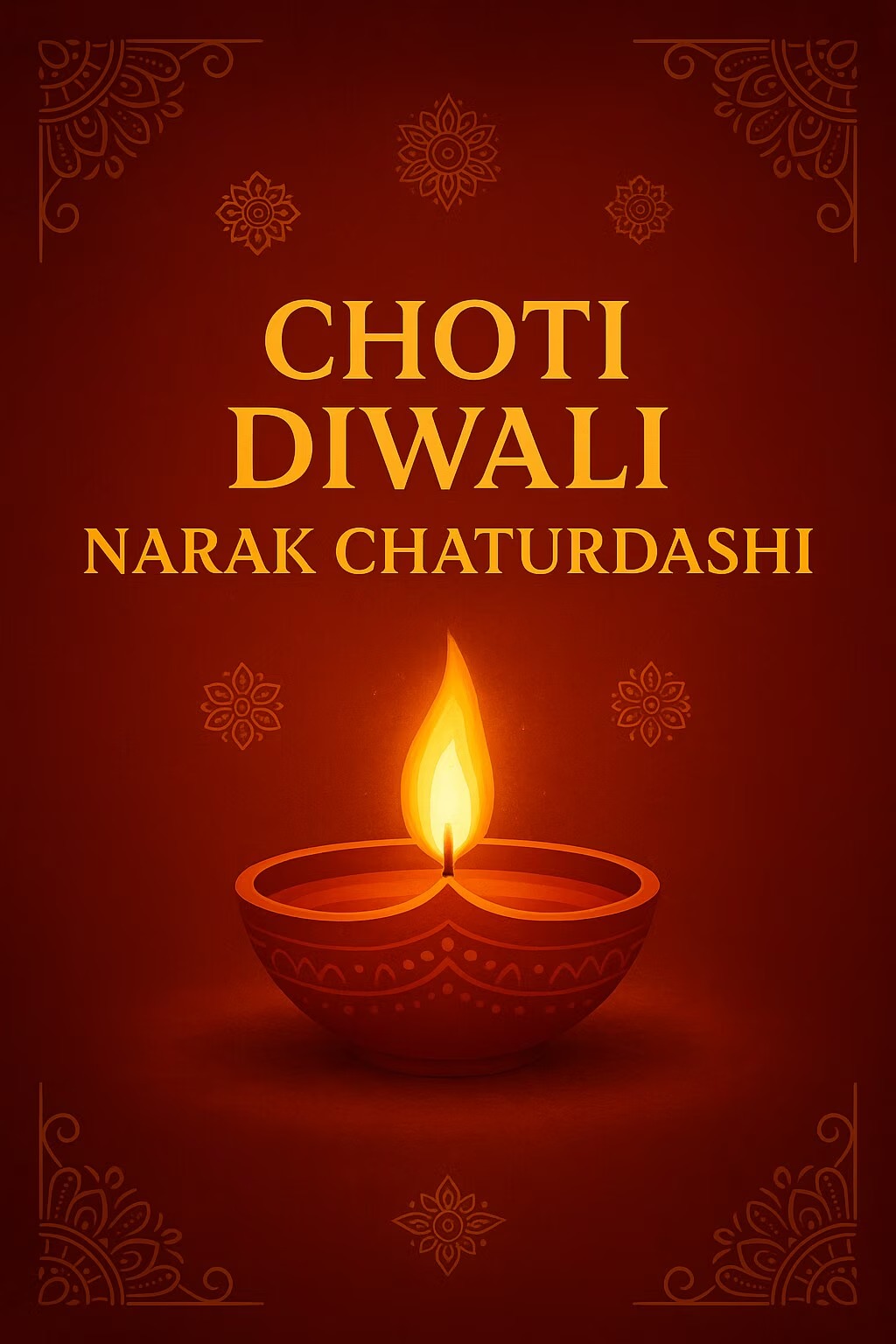 ਨਵੀਂ ਦਿੱਲੀ (ਪਾਇਲ) - ਹਿੰਦੂ ਕੈਲੰਡਰ ਦੇ ਅਨੁਸਾਰ, ਛੋਟੀ ਦੀਵਾਲੀ (ਨਰਕ ਚਤੁਰਦਸ਼ੀ) ਕਾਰਤਿਕ ਮਹੀਨੇ ਦੇ ਕ੍ਰਿਸ਼ਨ ਪੱਖ (ਕਾਲੇ ਪੰਦਰਵਾੜੇ) ਦੀ ਚਤੁਰਦਸ਼ੀ ਤਿਥੀ ਨੂੰ ਮਨਾਈ ਜਾਂਦੀ ਹੈ, ਜੋ ਅੱਜ, ਐਤਵਾਰ, 19 ਅਕਤੂਬਰ ਨੂੰ ਪੈਂਦੀ ਹੈ।