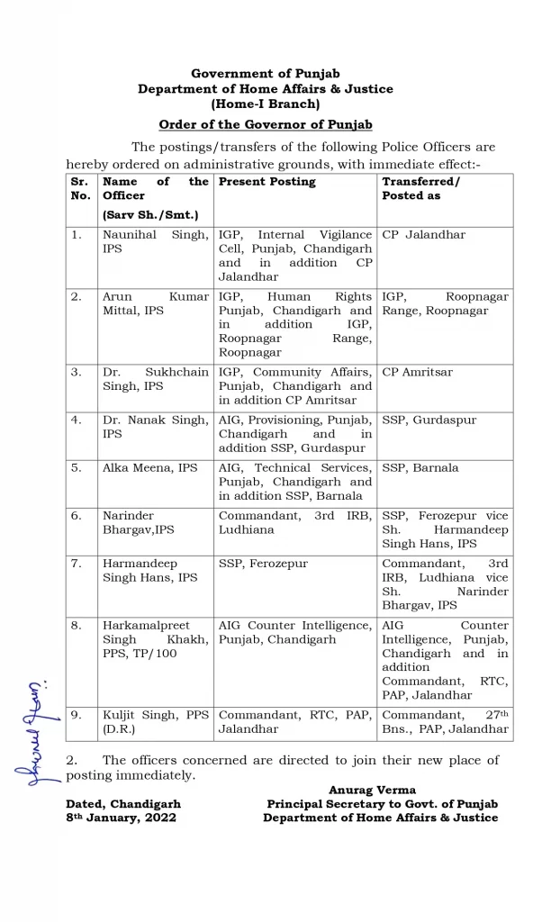 ਨਿਊਜ਼ ਡੈਸਕ (ਜਸਕਮਲ) : ਪੰਜਾਬ ਸਰਕਾਰ ਨੇ ਅੱਜ ਪੰਜਾਬ ਦੇ 7 ਆਈਪੀਐੱਸ ਤੇ 2 ਪੀਪੀਐੱਸ ਅਫਸਰਾਂ ਦੇ ਤਬਾਦਲੇ ਕੀਤੇ ਹਨ ਪੂਰੀ ਸੂਚੀ।